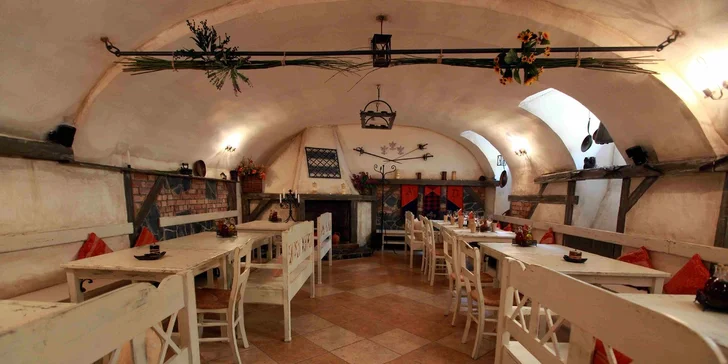 Profesionálna obsluha v dobových kostýmoch vám uviaže okolo krku podbradník a vy sa môžete pustiť do hodovania ako na kráľovskej hostine. Nezabudnuteľný gastronomický zážitok dotvorí široká ponuka vín z Porthosovej pivnice. Netradičné názvy jedál akoby pochádzali priamo z dielne Alexandra Dumasa.