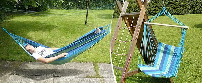 Komfortnú sieť aj kreslo zavesíte na balkón, terasu alebo do tieňa stromov v pokojnej záhrade.