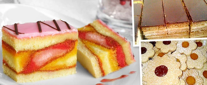 Linecké koláčiky v tvar kvetinky, plnené s jahodovým a marhuľovým domácim džemom, posypané cukrom alebo poliate čokoládou. Trvanlivosť minimálne 14 dní.
