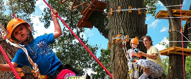 Deti od 3 rokov môžu pod dohľadom svojich rodičov a inštruktora zažiť dobrodružstvo ako odrastenejší lezci. Okruh špeciálne navrhnutý pre malých Tarzančekov ponúka lanovku a 6 prekážok vo výške 1 m nad zemou.