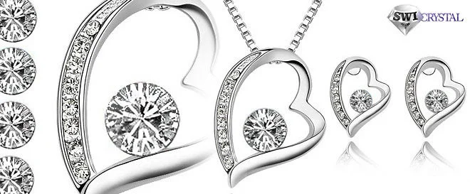 Súprava šperkov obsahuje retiazku s príveskom v tvare srdiečka aj jemné náušnice v tvare srdiečka, pričom všetky časti súpravy sú zdobené originálnymi krištáľmi Swarovski Elements vo farbe nevinnej bielej, sladkej ružovej, tajomnej fialovej a nebeskej modrej.