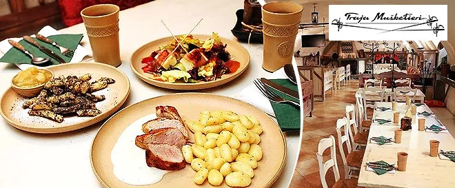 Preneste sa na chvíľu do sveta troch mušketierov. Posedenie v reštaurácii Traja mušketieri zariadenej v duchu francúzskeho vidieka z čias neskorého stredoveku a začiatku novoveku vytvorí z obyčajného hodovania, kompletný zážitok s vlastným príbehom. Príjemná obsluha v dobových kostýmoch navodí dokonalú atmosféru zašlých mušketierskych čias.