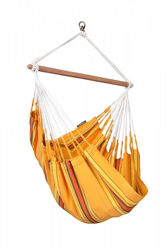 Špičková hojdacia sedačka Currambera je vyrobená z prírodnej, veľmi mäkkej no pevnej husto tkanej 100 % bavlny, ktorá vydrží extrémnu záťaž. Pri ich tkaní sa používajú veľmi dlhé vlákna, ktorá následne zabraňujú žmolkovaniu a ľahkému roztrhnutiu.