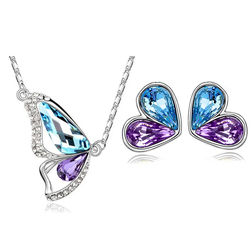 Táto sada šperkov v tvare motýlich krídel v modrofialovej kombinácií, modrej, bielej alebo ružovej farbe, zložená z elegantných náušničiek a retiazky s príveskom je vhodným darčekom pre každú ženu a stane sa krásnym doplnkom na každodenné nosenie do práce, či aj na príležitostné nosenie ku každému outfitu. Vyberte si zo 4 farebných kombinácií, ktorými určite upútate a vyniknete!