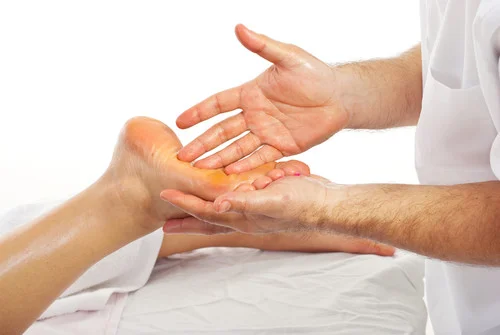 Spôsob liečenia, ktorý je založený na stimulovaní reflexných plôch na chodidlách. Jednotlivé reflexné body na chodidlách zodpovedajú jednotlivým orgánom alebo častiam tela. Ak je niektorý orgán v stave akútneho zápalu alebo bolesti, reflexnou masážou chodidla ho uvoľňuje a upokojuje. Masér sa zameriava na reflexné plôšky na chodidle zodpovedajúce oblasti krčnej chrbtice.