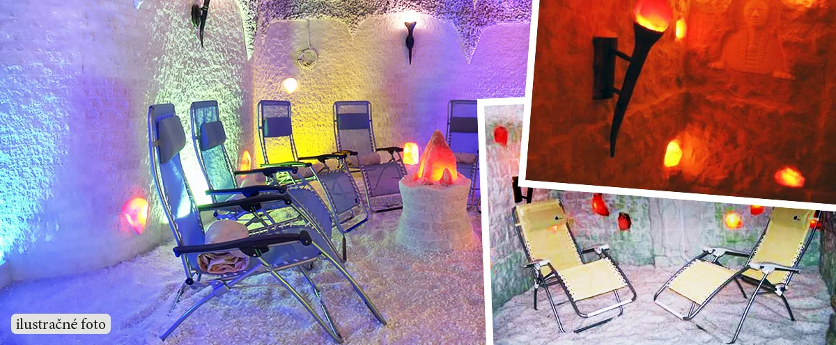 Pobyt v soľnej jaskyni zvyšuje obranyschopnosť organizmu a priaznivo pôsobí na jeho relaxáciu. Pobyt je potrebné vo vlastnom záujme rezervovať aspoň deň alebo dva vopred. Na výber máte 1 alebo 5 vstupov.