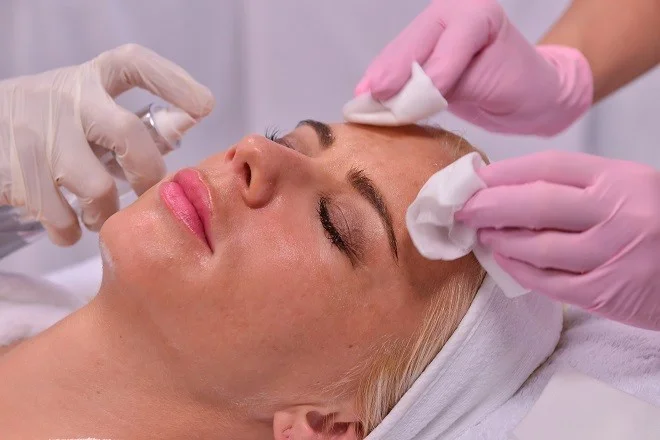 Ošetrenie začína očistením zvoleného miesta čistiacou emulziou, ktorá odstráni odumreté bunky a kožný maz z povrchu pokožky. Následne sa aplikuje nestekajúci gélový peeling Teosyal podľa zvolenej koncentrácie a po uplynutí aplikačného času sa zneutralizuje.