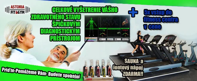 Urobíme Vám dôkladnú diagnostiku Vášho zdravotného stavu, zlepšenie Vám umožníme okamžite 5 x vstupom do nášho fitness centra Astoria Fit&Gym s možnosťou využiť fínsku saunu.