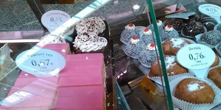 - orechová guľka, gaštanová roláda, sacher torta, ovocné rezy, ovocný košíček, jogurtová kocka, kocka lesná zmes, Krémeš, Veterník …