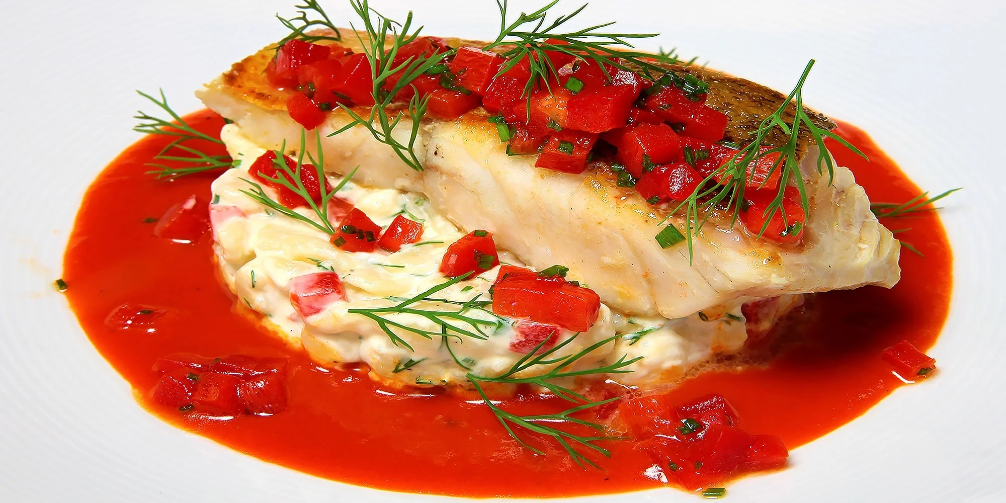 Kroketa z hovädzieho chvosta s rezancami s bryndzou a kôprom s chrumkavými kúskami domáceho chleba, pošírovaná šťuka s tvarohovými špeclami s omáčkou a salsou z pečených paprík a piškótová guľa v čokoláde plnená slivkami.