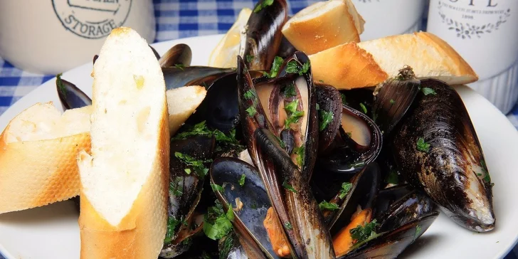 - 1 x 600 g Mušle (slávky) vo vínovej omáčke