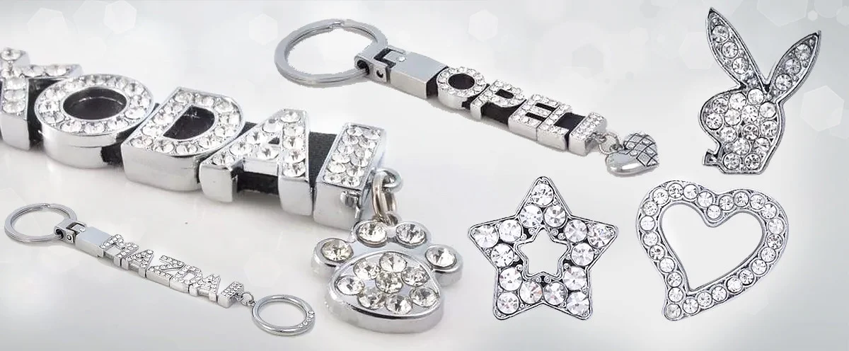 Písmenká sú vykladané kamienkami a sú navliekané na pravú kožu bielej, červenej či čiernej farby podľa vášho výberu. Kľúčenka môže byť ukončená jedným zo siedmych motívov: