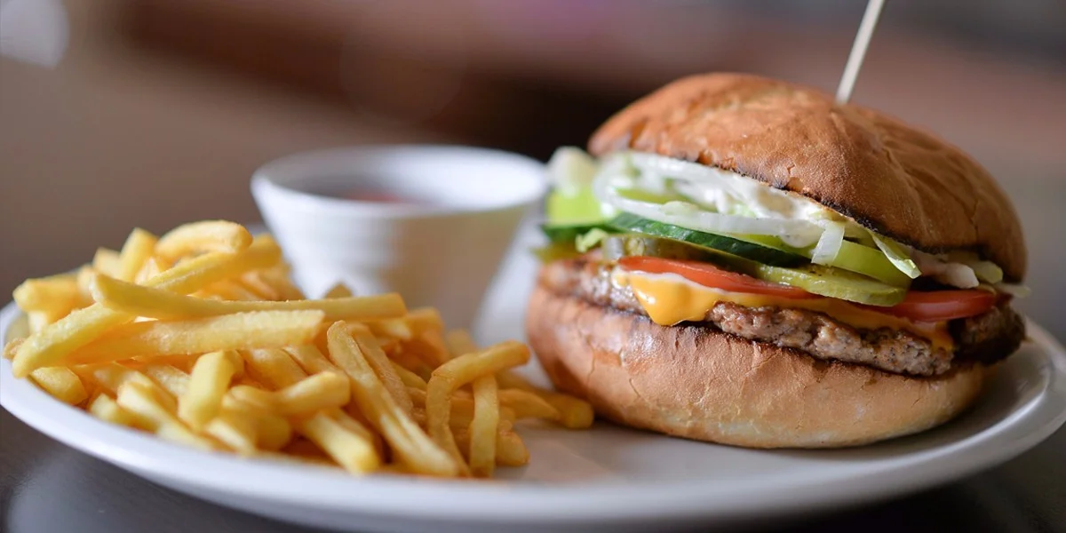 - 1× 300g Hovädzí burger ( žemľa (100g), hovädzie mäso (100g), plátok syra cheddar, zelenina, majonéza)