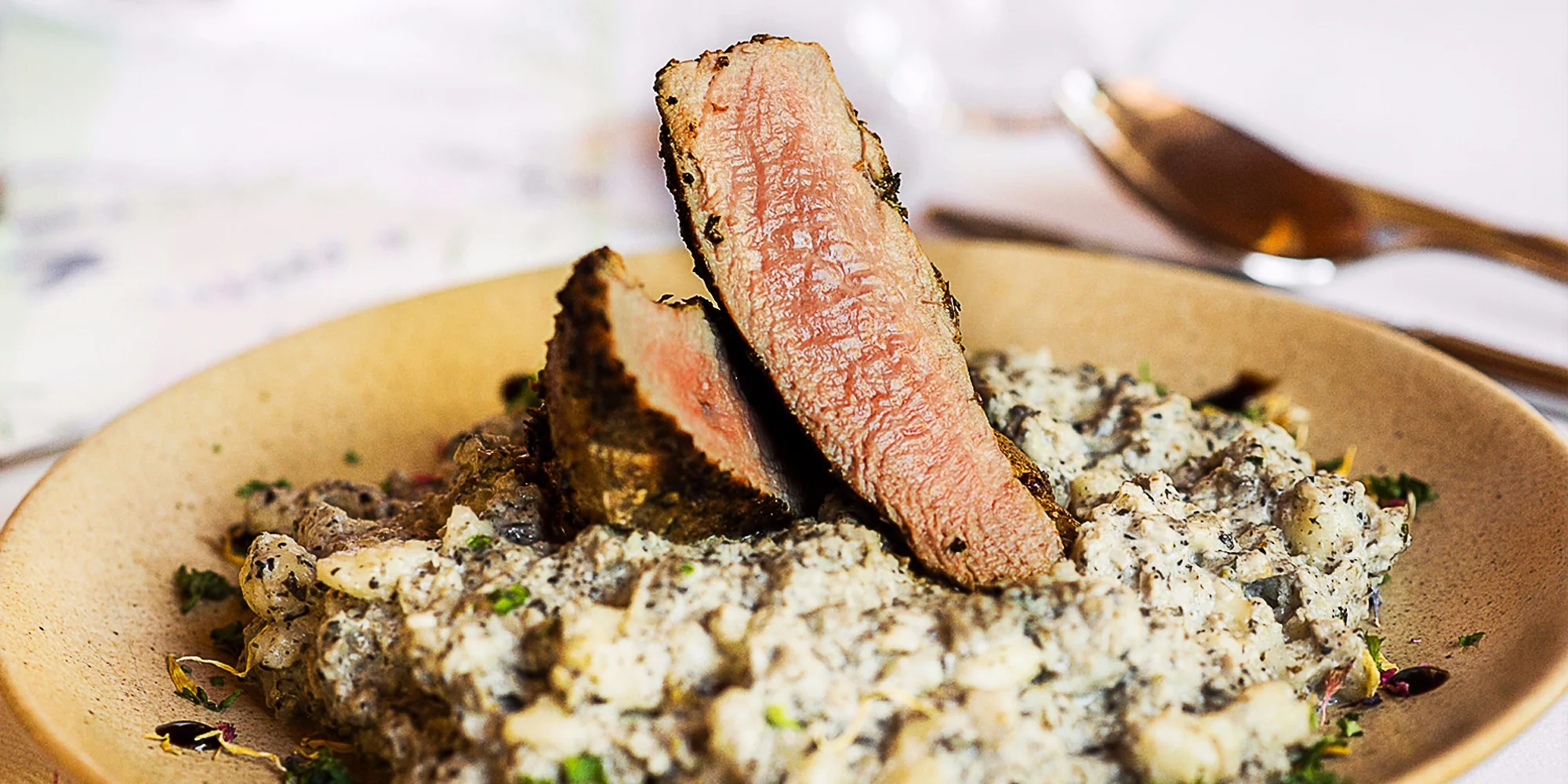 Bravčová panenka v bylinkovej kruste s domácimi hubovými haluškami + dezert
