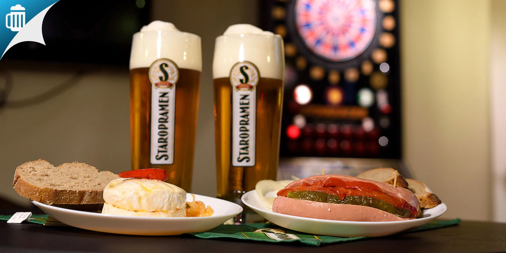 1 × 0,5 l Čapované pivo Staropramen 10° a 1 x XXL utopenec alebo nakladaný Hermelín