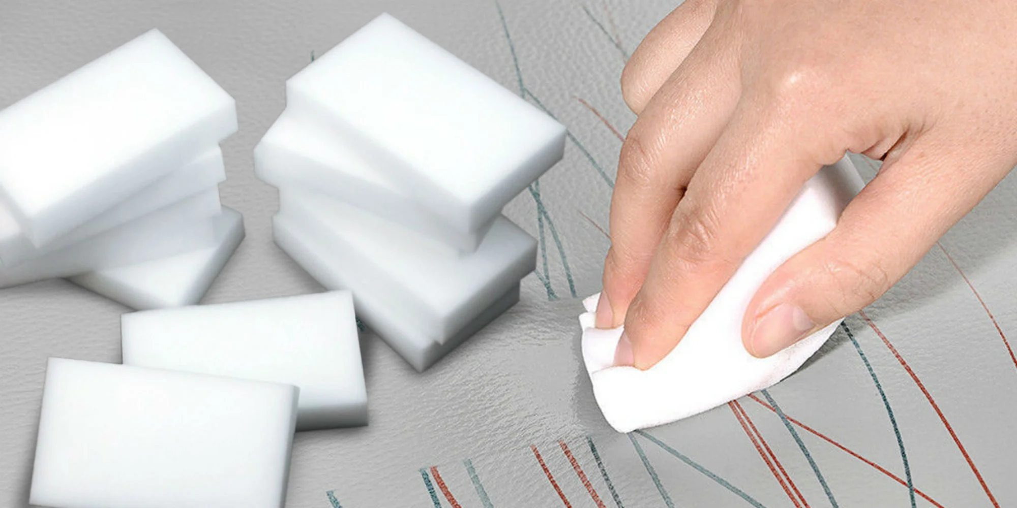 Môže tiež čistiť nečistoty na koži alebo drevenom nábytku, plastoch a dreve. Na zlepšenie čistiaceho účinku môže byť špongia mierne namočená.