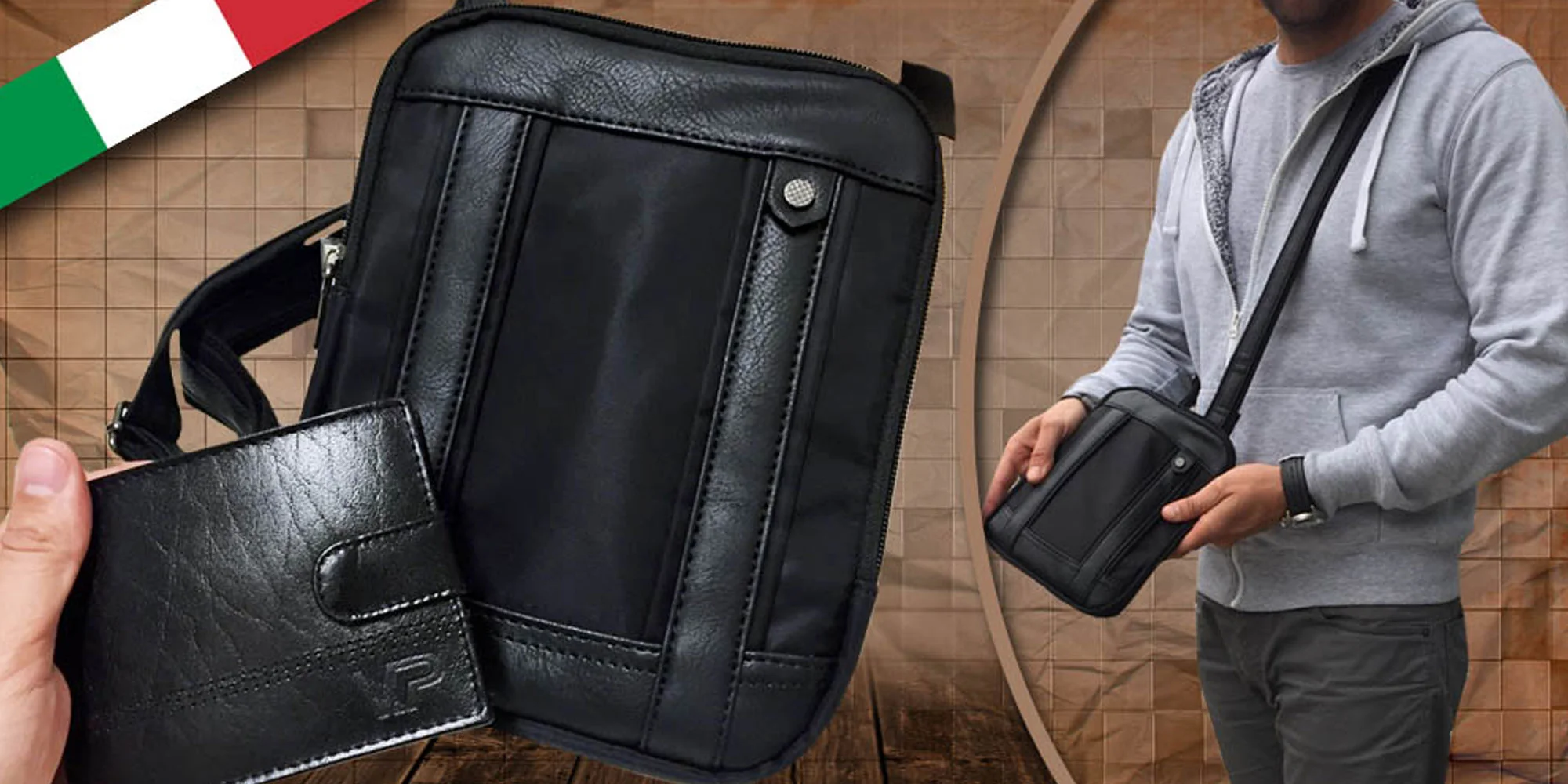 Praktická štýlovka, set koženej peňaženky a tašky cez rameno pre každého gentlemana.