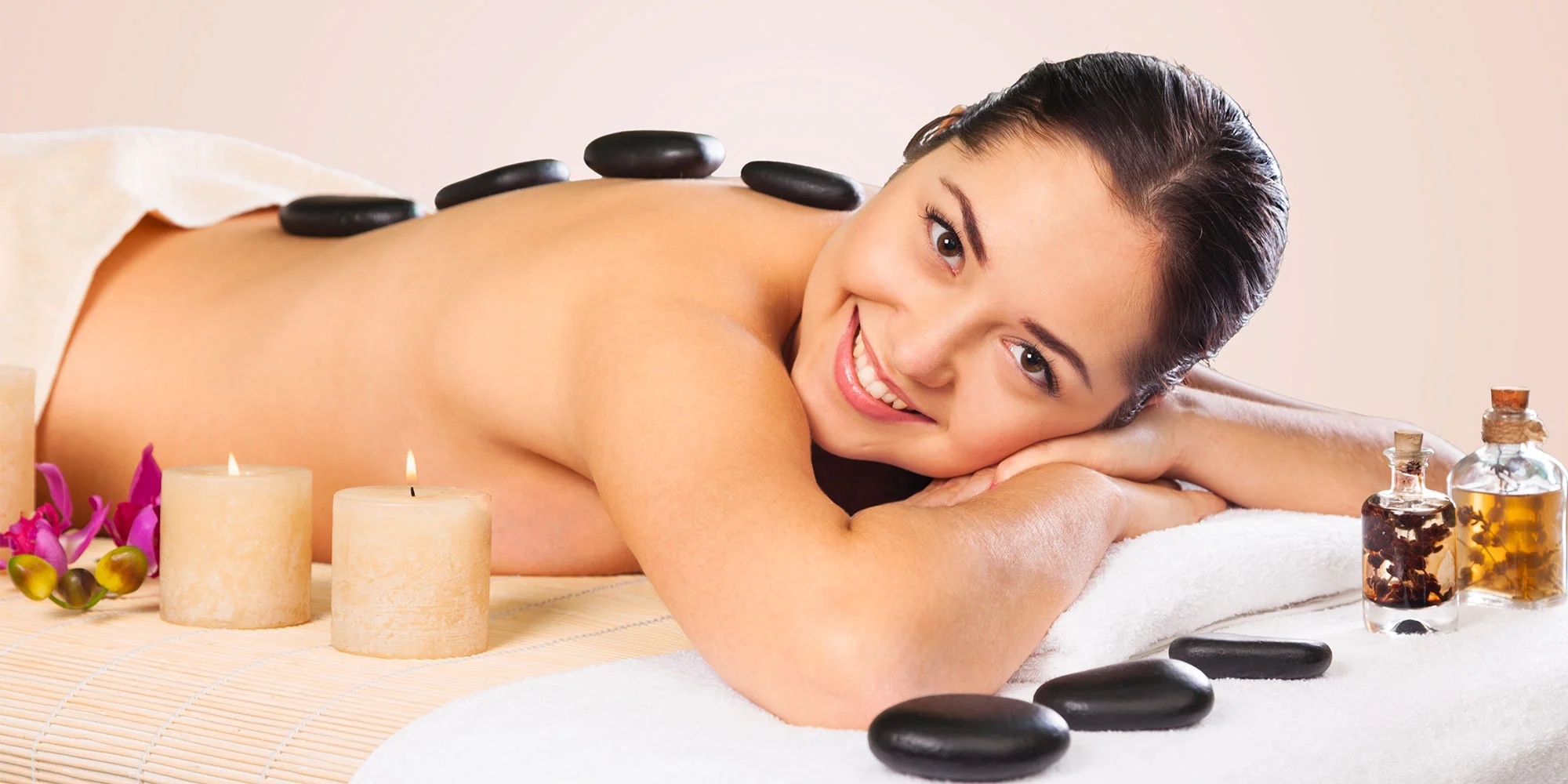 - 15 min Priloženie lávových kameňov na zohriatie organizmu