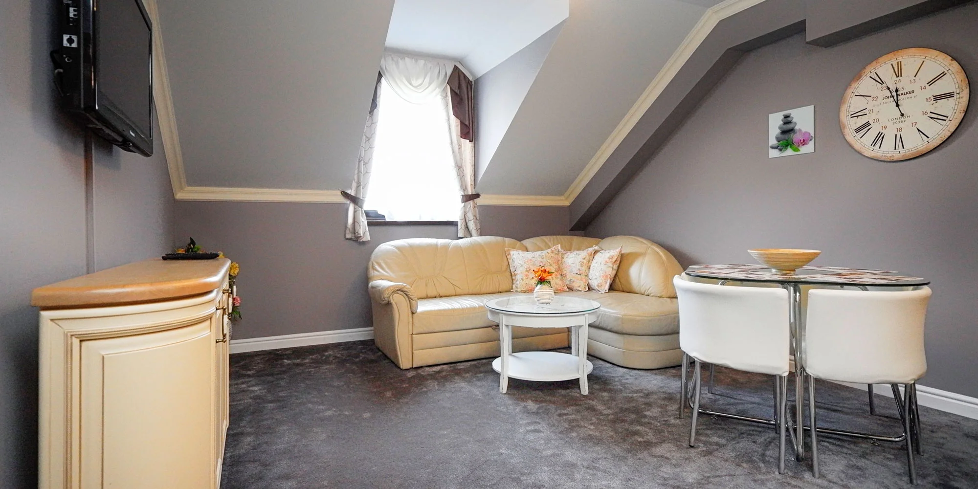 Apartmán má príjemnú a útulnú atmosféru aj vďaka tomu, že sa nachádza v podkroví. Má samostatnú spálňu, kúpeľňu, obývačku, ktorá je prepojená s kuchyňou (plne vybavenou a so všetkými spotrebičmi) a idylu dotvára nádherný výhľad na Skalnaté pleso. Nadštandardné vybavenie a nábytok na mieru sú zárukou, že sa budete cítiť pohodlne a nič vám nebude chýbať.
