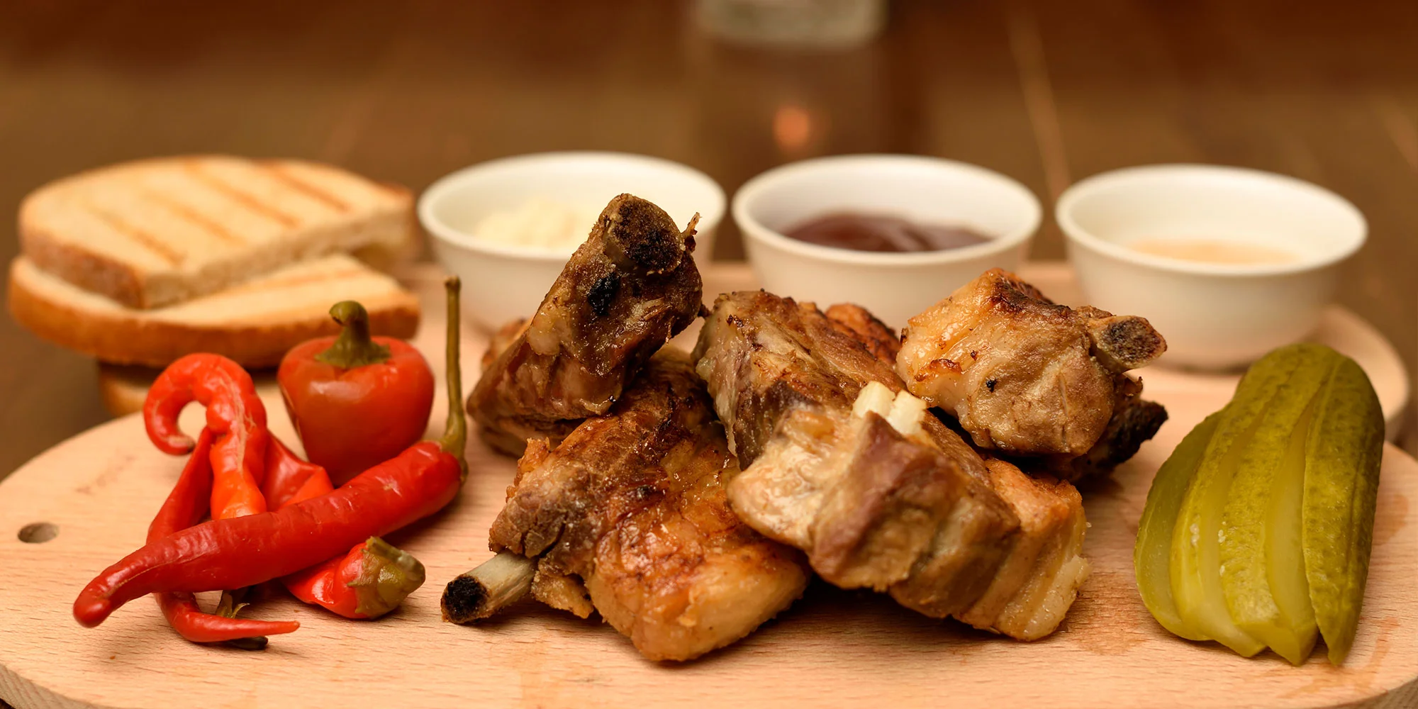 - 500 g Pečené rebierka v chilli-medovej marináde s prílohou
