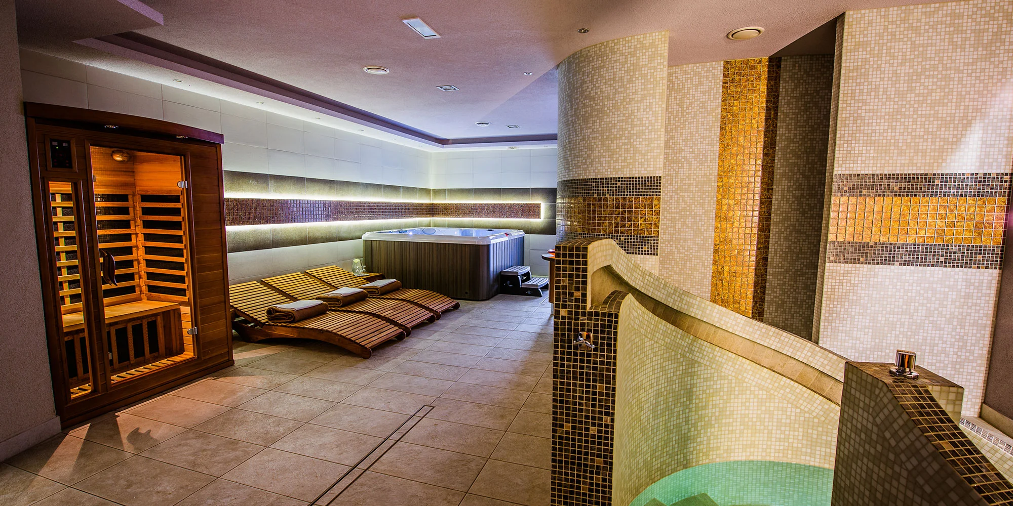 FÍNSKA SAUNA Pôsobenie sauny na organizmus je mnohostranné. Vplyvom vysokej teploty (60 až 110 °C, minimálna vlhkosť vzduchu 10 až 30%) dochádza predovšetkým k značnému prekrveniu kože. Sauna do značnej miery reguluje krvný tlak (osoby s vyšším krvným tlakom musia používať saunu veľmi opatrne) a telesná teplota sa priemerne zvyšuje o 1 až 2°C. Zvýšené prekrvenie a prehriatie podporuje pohyblivosť svalstva a kĺbov, pričom prispieva k zníženiu bolestí pohybového ústrojenstva. Vyššia teplota aktivizuje činnosť mazových žliaz, vplýva na vyplavenie nečistôt z kože, má podstatný detoxikačný a kozmetický význam. Sauna patrí k najvšestrannejším otužovacím procedúram a význam má aj ako prevencia rôznych chorôb z nachladnutia. OCHLADZOVACÍ BAZÉNIK Ochladenie tela po horúcom saunovaní (vo fínskej saune alebo infrasaune) je nevyhnutné a v ochladzovacom bazéne veľmi obľúbené. Zotrvať v bazéne s teplotou vody do 15 °C sa odporúča na 1 až 2 minúty. Po saunovom kúpeli, vo fáze ochladenia, poklesne zvýšená telesná teplota tela pôsobením čerstvého vzduchu a studenej vody na východiskovú hodnotu. Ochladenie spôsobuje pocit osvieženia, v nervovom systéme vyvoláva dôležité impulzy na orgány produkujúce hormóny, vplýva na priebeh látkovej výmeny a imunitu. INFRASAUNA Infračervená prehrievacia tepelná kabína je jedným