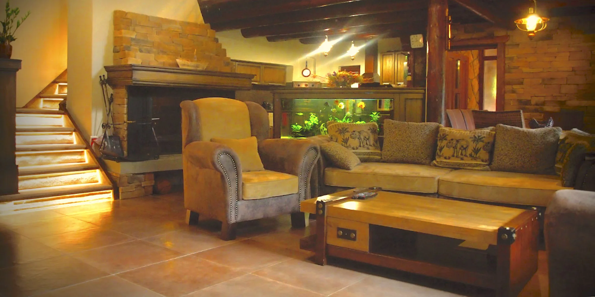 Koliba je nadštandardne zariadená. Ubytovať sa môžete v jedno, dvojlôžkových a jednej trojlôžkovej detskej izbe. K výbave každej izby patrí Wi‑Fi pripojenie na internet a vlastná kúpeľňa s toaletou. Samozrejmosťou sú dve plne vybavené kuchyne spojené s obrovskou halou, s krásnym akváriom a krbom. K interiéru koliby patria aj masážne kreslá, sauna, biliard a k dispozícii je aj práčovňa.