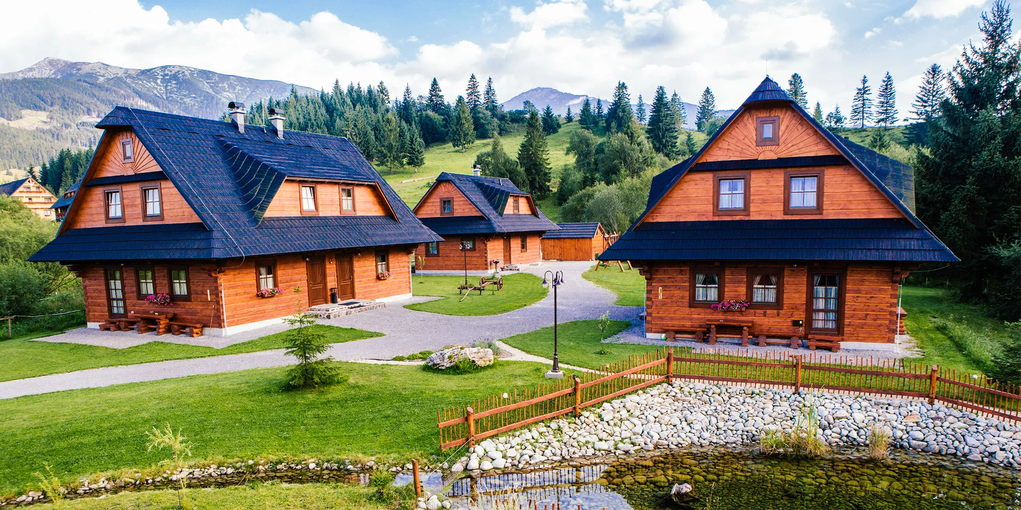 V každej drevenici určenej na ubytovanie hostí, sú 2 samostatné apartmány, ktoré nie sú vzájomne prepojené a každý má samostatný vchod. Interiér apartmánov je zariadený vkusne a komfortne, každý apartmán má 2 spálne, 2 kúpeľne a obývačku s kuchyňou.