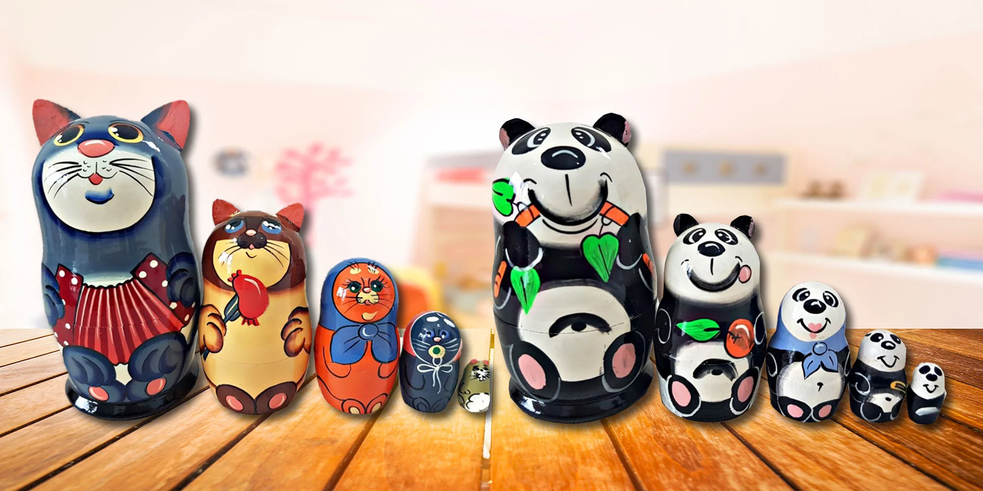 Matriošky pozostávajú z viacerých, pestrofarebne vyfarbených drevených, dutých figúrok zmenšených tak, aby sa dali do seba vkladať. Vynikajú kvalitným a precíznym spracovaním.