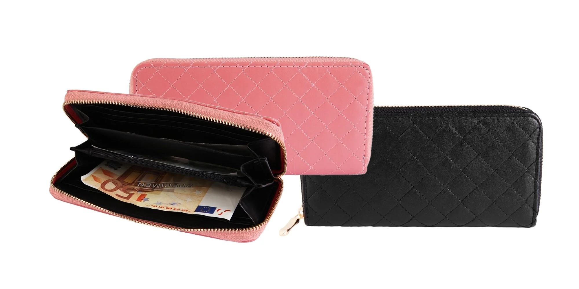 Dostupná je v  čiernej i ružovej farbe. Každá peňaženka má až 14 priehradok na bankovky, mince aj doklady!