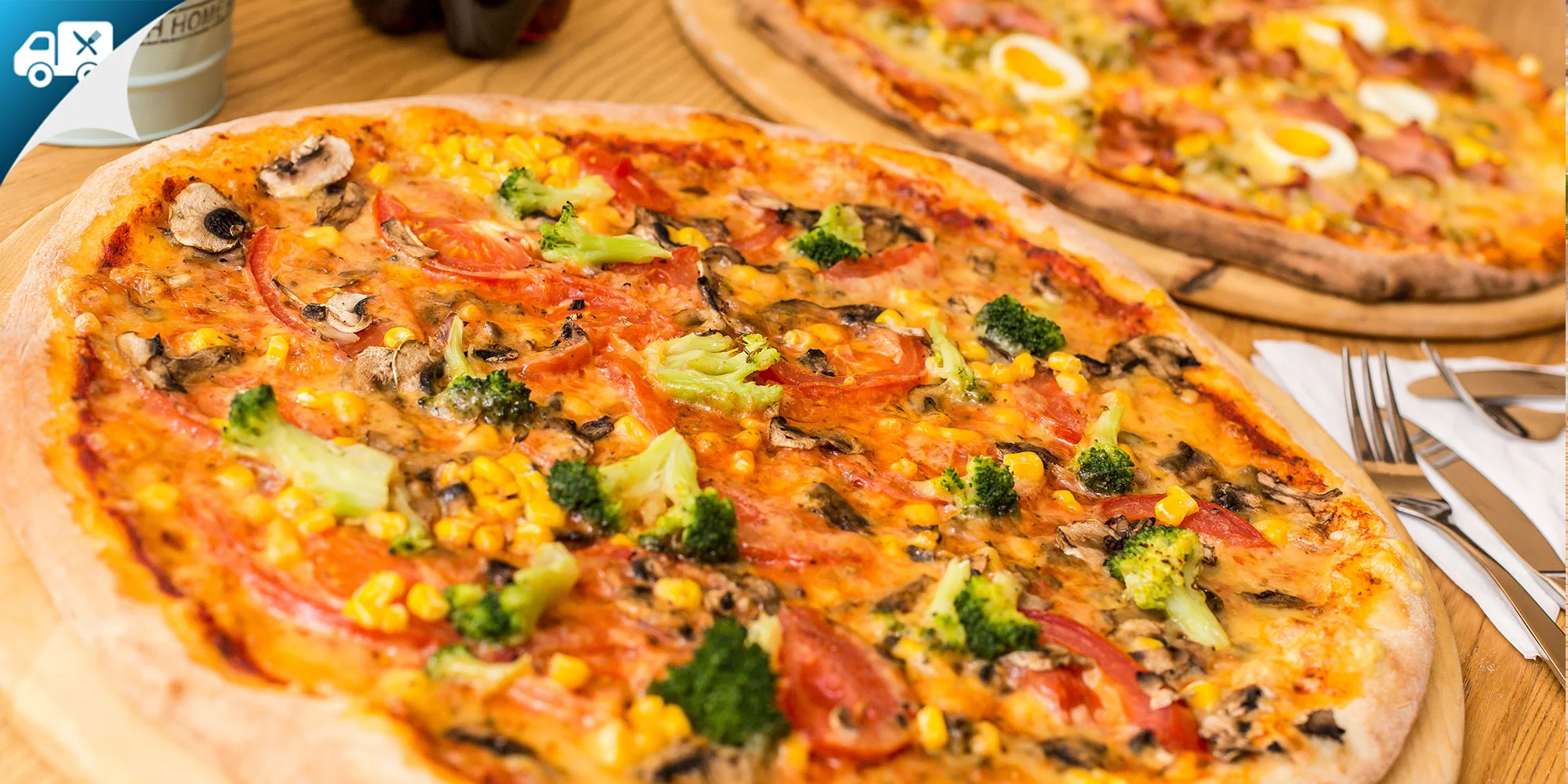 - Vegetariána – paradajková omáčka, syr, brokolica, kukurica, šampióny, čerstvé paradajky