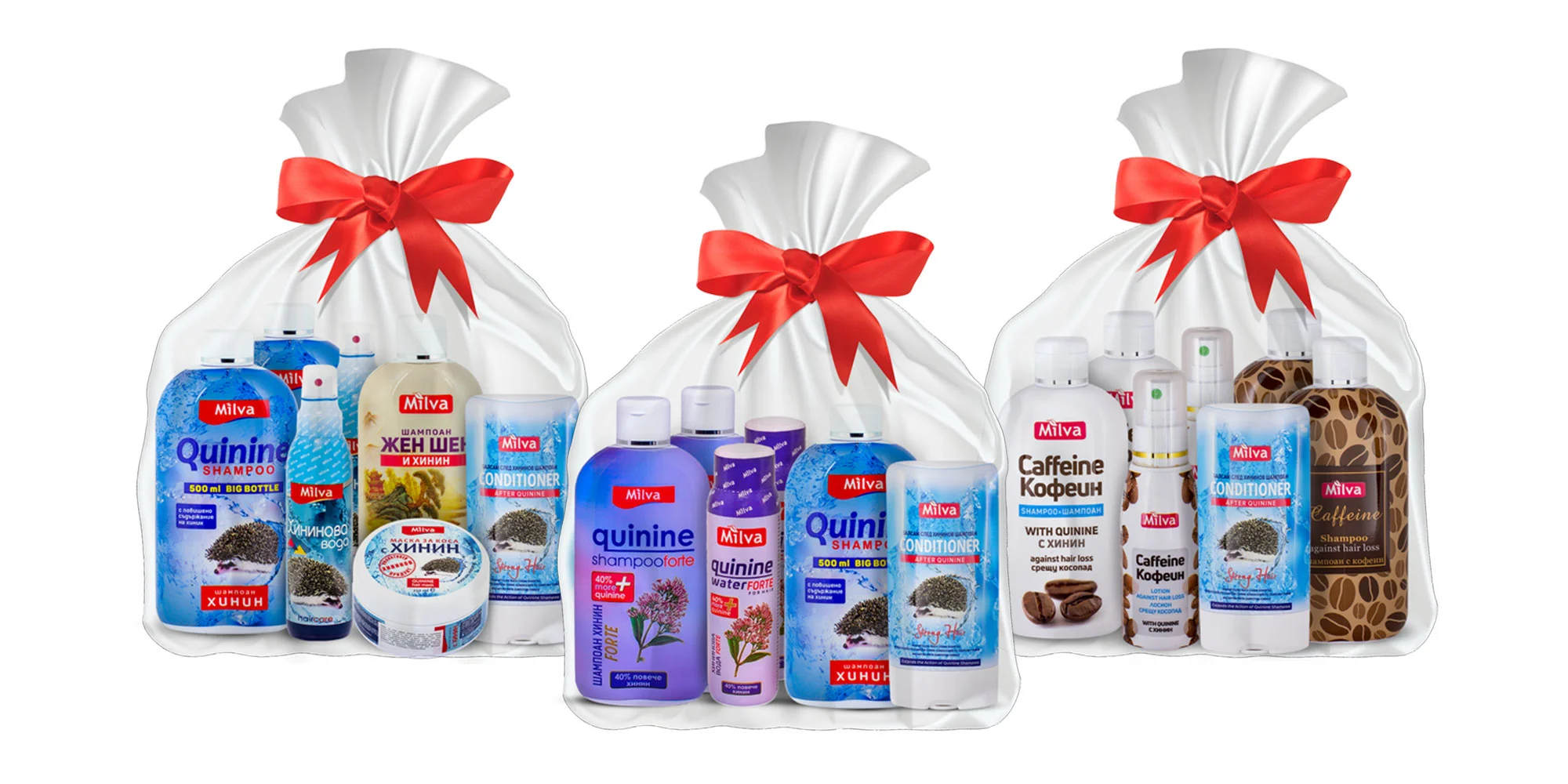 Vybrať si môžete výrobky s účinnou látkou chinín, ktorý rýchlo preniká do vlasovej pokožky, spevňuje vlasové folikuly, stimuluje rast zdravých a silných vlasov a znižuje alebo úplne zastavuje vypadávanie vlasov. Z chinínovej rady sú v ponuke: