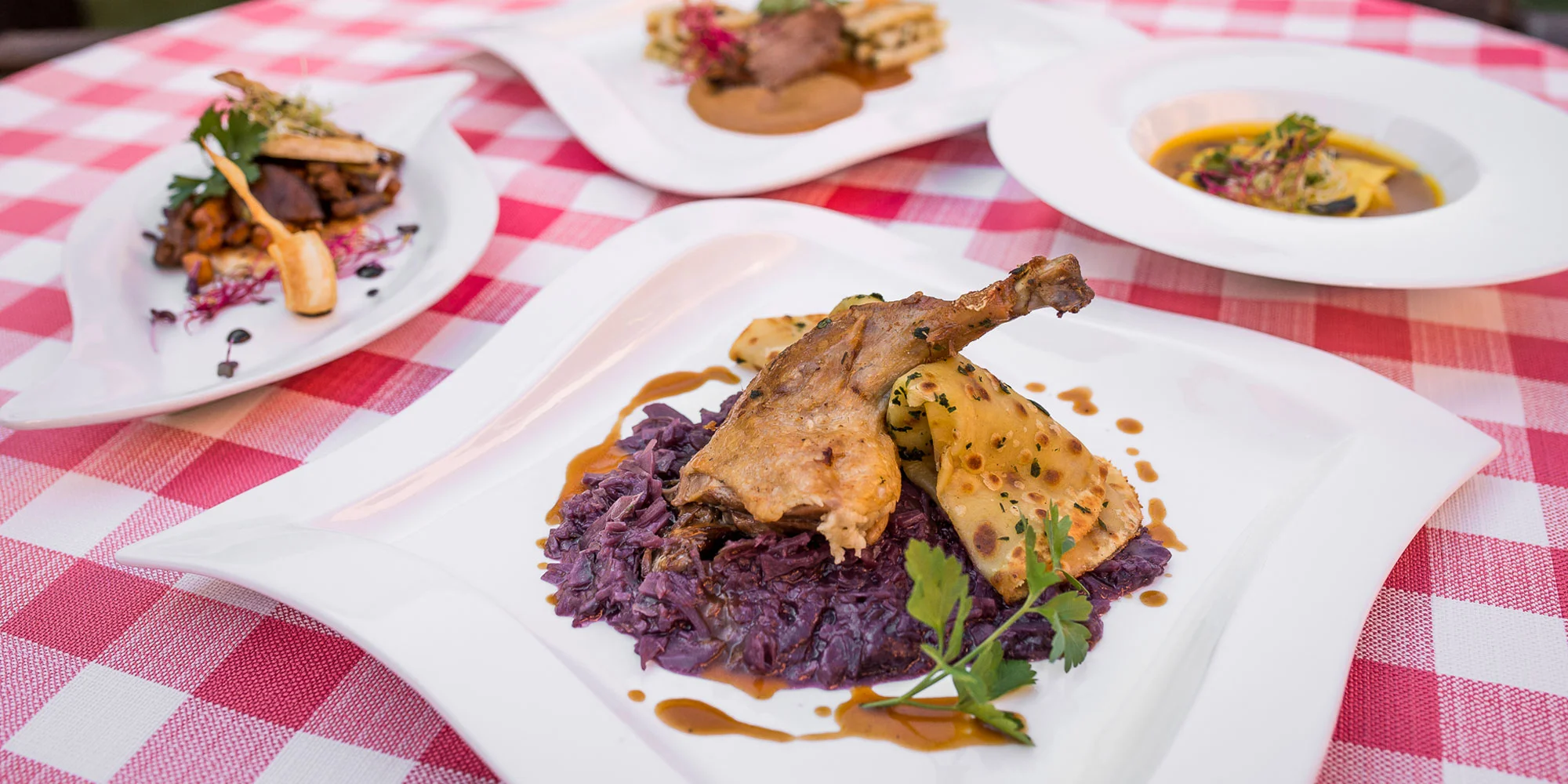 Dvojchodové menu spájajúce lahodné chute so starostlivou prípravou. Rozhodnite sa medzi restovanou kačacou pečeňou či konfitovaným kačacím stehnom a oddajte sa gastronomickým pôžitkom!