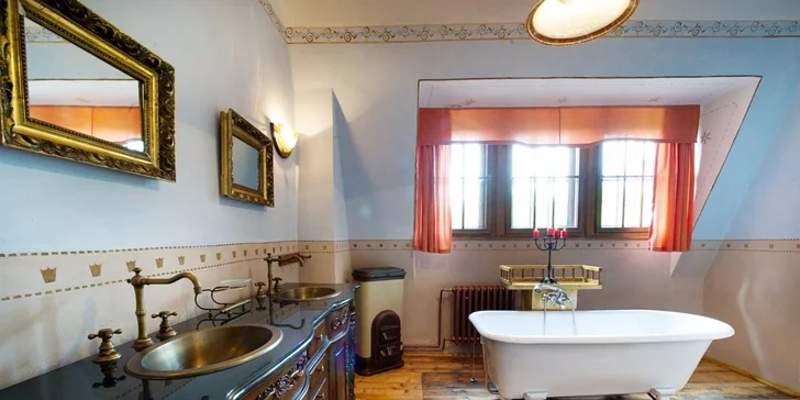 - 2× ubytovanie pre 2 osoby v dobovo zariadenej izbe s vlastným sociálnym zariadením
