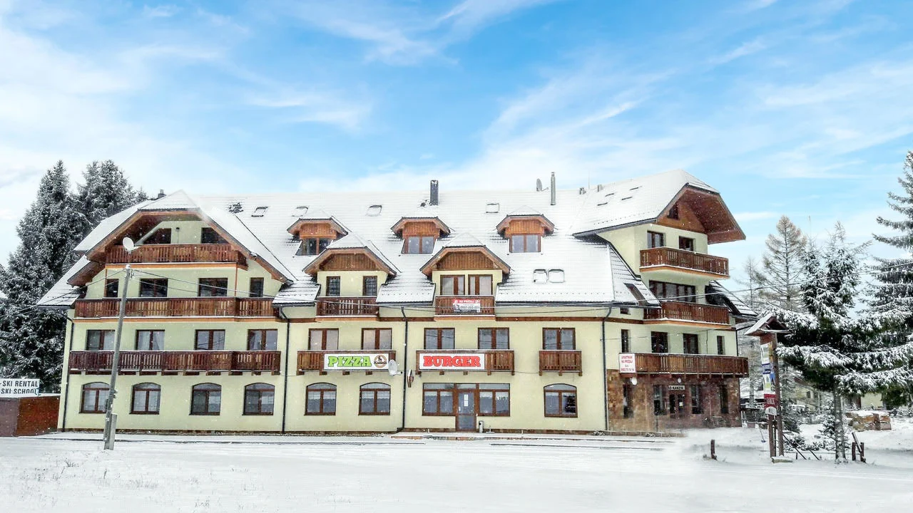 Apartmán (45 m²) pozostáva z dvoch miestností (obývacej časti s kuchyňou a spálne). Kuchyňa s kuchynskou linkou (el. dvojplatnička, chladnička, mikrovlnná rúra, rýchlovarná kanvica) a s obývacou časťou, v ktorej sa nachádza prístelka pre 1 osobu a televízor. V spálňovej časti sa nachádzajú 3 pevné lôžka. Apartmán má WC a kúpeľňu so sprchovým kútom a balkón. K dispozícii je aj mezonetový apartmán, v ktorom sa na hornom poschodí nachádza spálňa s tromi pevnými lôžkami a v dolnej časti jedno pevné lôžko. Štúdio (20 m²) je jedna miestnosť pre 2–3 osoby s kuchynskou linkou (elektrická dvojplatnička, chladnička, mikrovlnná rúra, rýchlovarná kanvica, kuchynské riady, poháre a príbor.) s rozťahovacou pohovkou a televízorom. Štúdio má WC a kúpeľňu so sprchovým kútom. V suteréne apartmánového domu sa nachádza miestnosť na odkladanie lyží, bicyklov a garáž. V reštaurácií hotela si môžu klienti vybrať z ponuky raňajok, ponúkaných formou bufetového stola a objednať si aj polpenziu, pripadne si jedlo pripraviť na apartmáne, či štúdiu. V suteréne apartmánového domu sa nachádza miestnosť na odkladanie bicyklov a garáž. |
