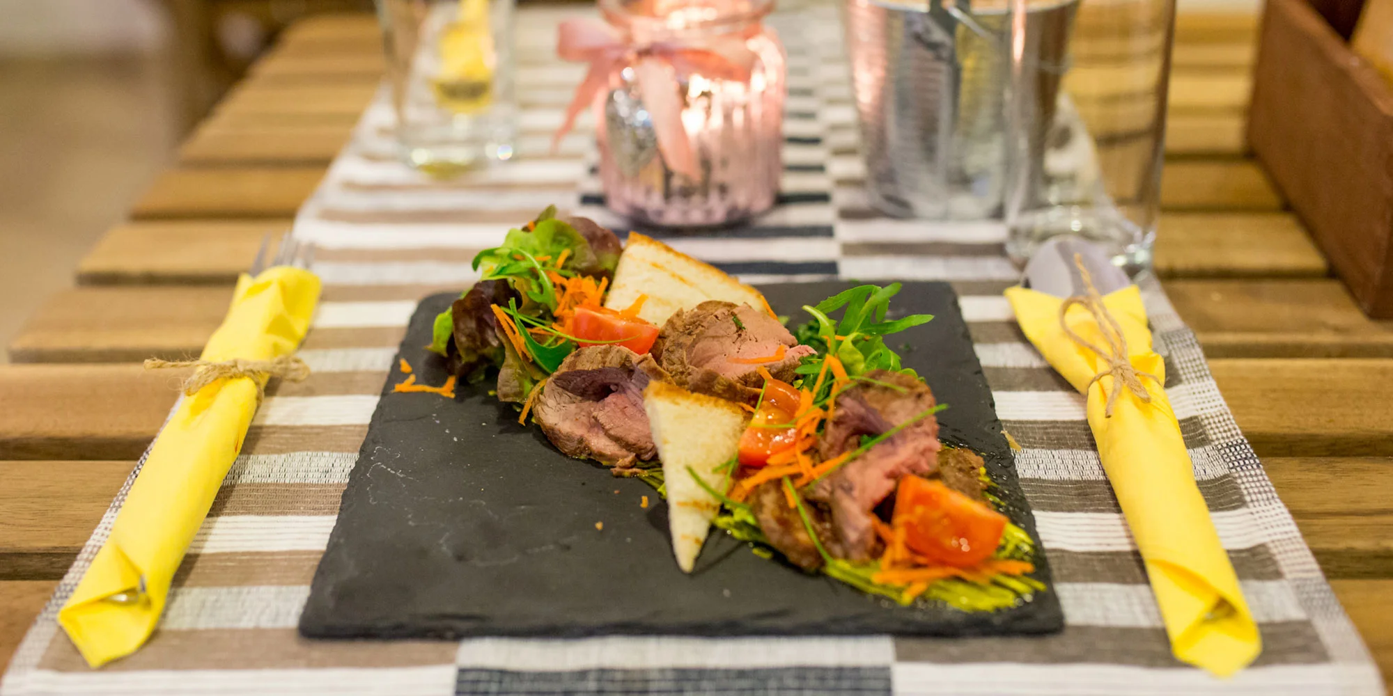 - 2 × 180 g Predjedlo: Roast beef s horčicovo-medovým dresingom, čerstvý šalátik, pečivo