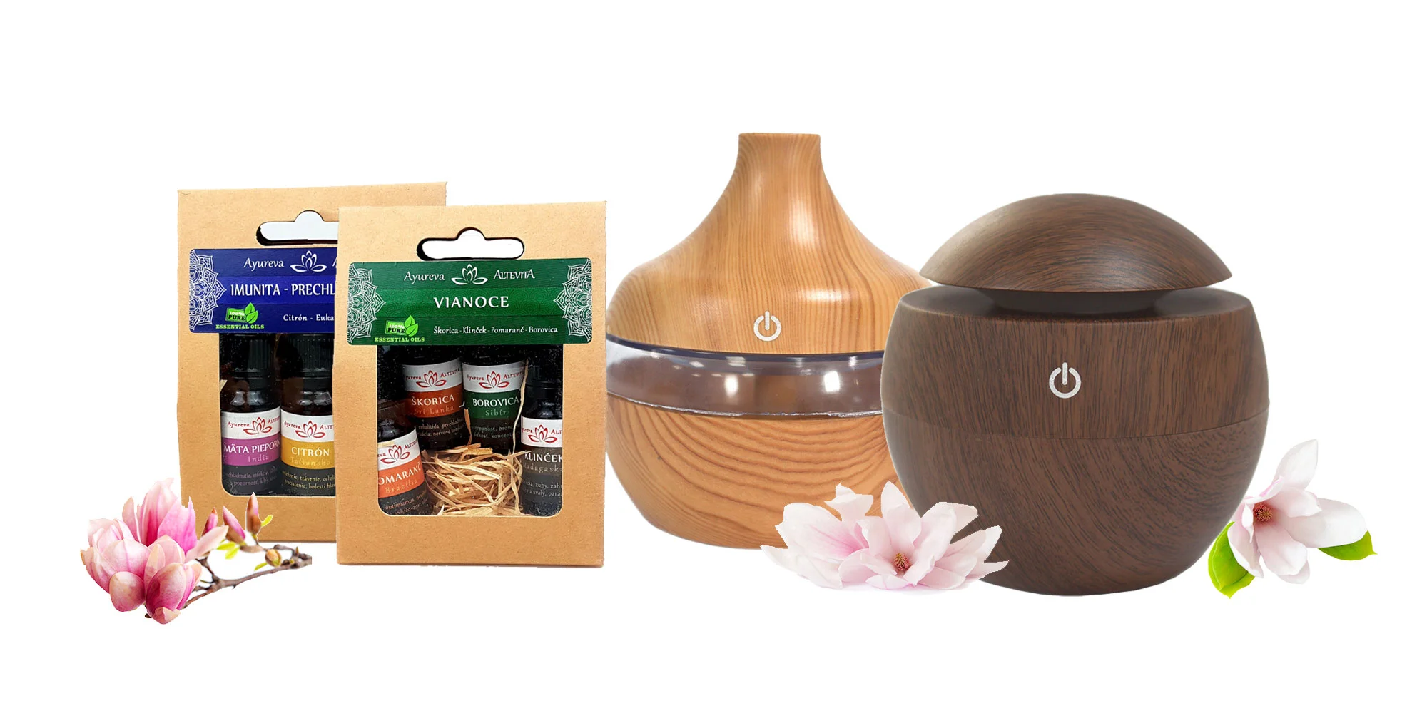 Difúzer môže byť použitý aj ako zvlhčovač vzduchu. Vyberte si do difuzéra obľúbené prírodné esenciálne oleje, sety vytvorené pre domácnosť a dezinfekciu, imunitu a prechladnutie, pozornosť a koncentráciu, spánok a pohodu, tantru a zmyselnosť alebo pre voňavé Vianoce.