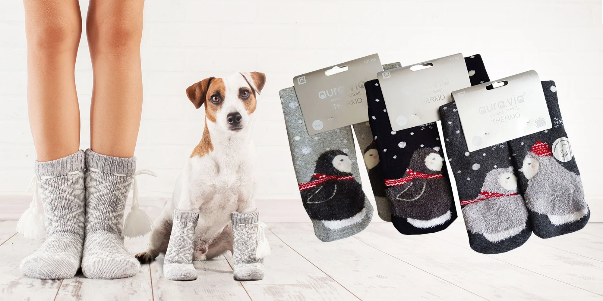Protišmykové dámske ponožky s tučniakmi alebo snehuliakmi