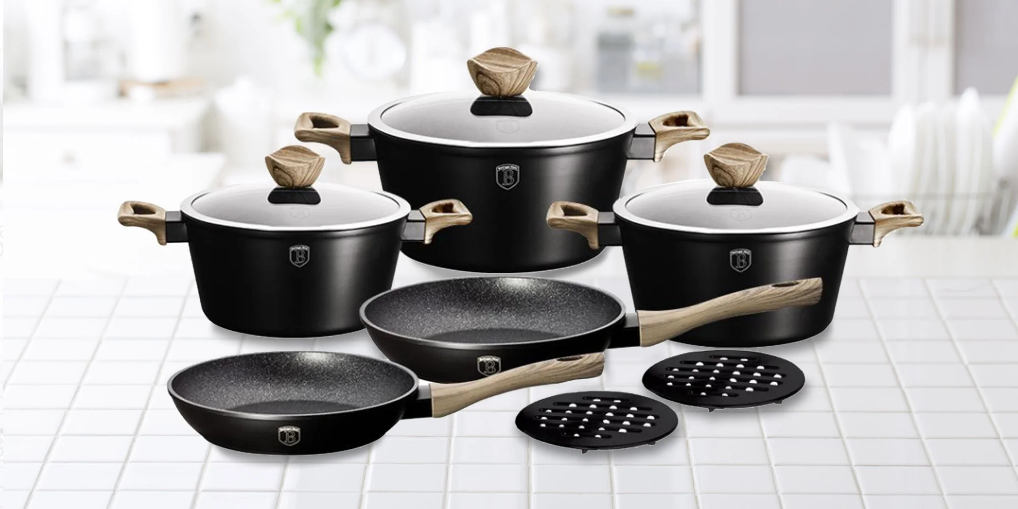 Celá sada je Eco Friendly, čo znemená, že neobsahuje PFOA, olovo či kádmium. Vyrobená je z liateho hliníka a trojnásobnej vrstvy mramoru, čiže je vhodná aj do umývačky riadu.