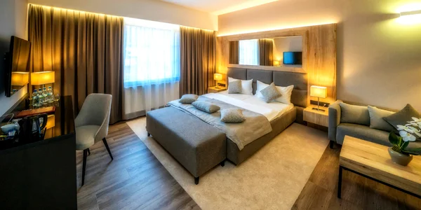 Ubytovanie vyhovuje 4-hviezdičkovému statusu hotela. Moderné izby DeLuxe vítajú svojich návštevníkov s otvorenou náručou a sú vysoko cenené pre svoj komfort a jedinečný štýl. Nájdete tu kúpeľňu, LCD televízor, telefón, Wi‑Fi, minibar, klimatizáciu a trezor pre vaše cennosti. Veľká king size posteľ je prekrásna a sľubuje vám, že v nej budete snívať len tie najkrajšie a najpohodlnejšie sny.