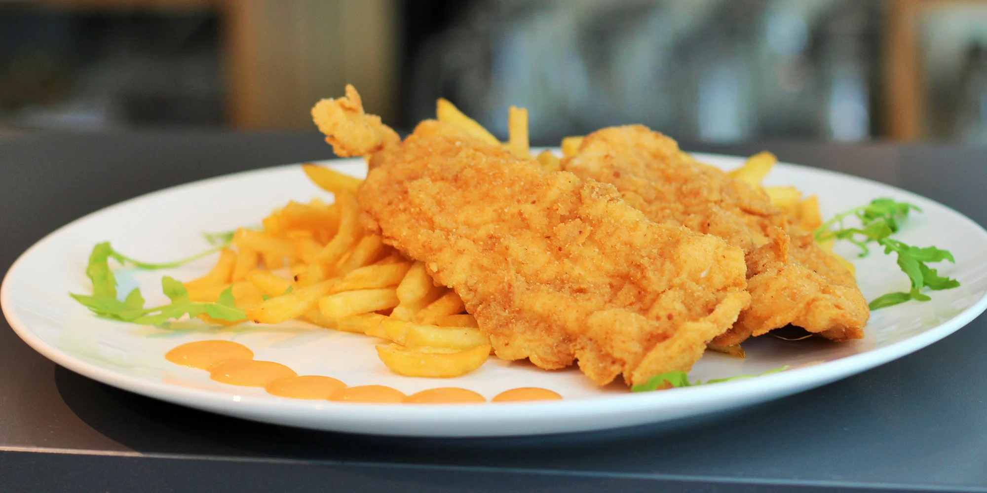 1 x Vyprážaný kurací rezeň s hranolkami alebo ryžou a polievkou podľa dennej ponuky