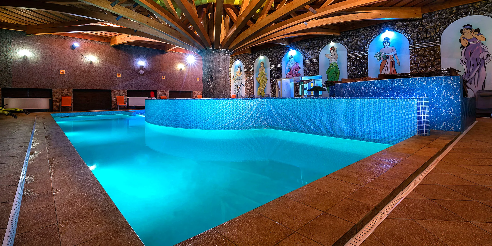 V penzióne Predná Hora** s jeho novozrekonštruovaným vodným svetom na vás čaká plavecký bazén s protiprúdom, oddychový bazén s masážnou lopatou, ktorá má blahodarné účinky na krčnú chrbticu a stuhnutú šiju, vodný hríbik s podobnými účinkami, jaskyňa s hydromasážou, ktorá vám prekrví pokožku, masážne lehátka, vírivá rieka, masážne sedadlá a ďalšie skvelé novinky. Úžasné miesto pre kráľovský oddych. |