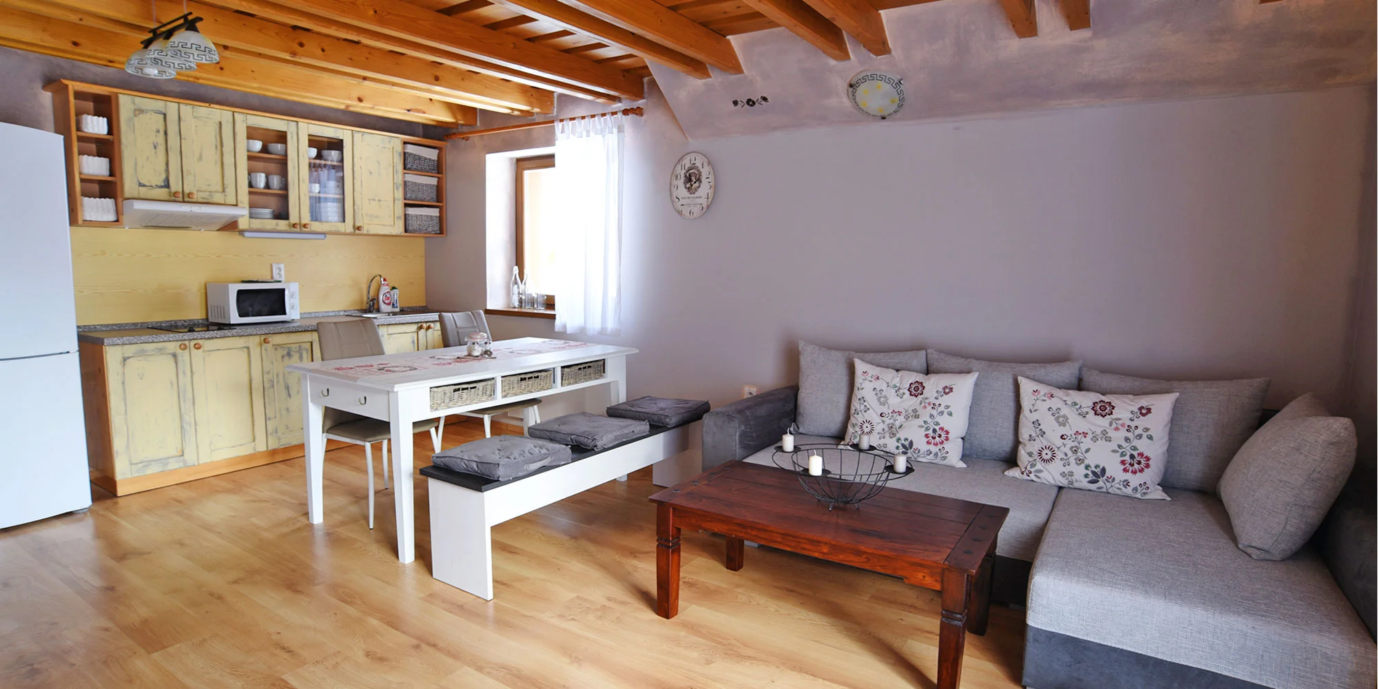 V apartmánovom dome sa na každom z 3 poschodí nachádza jeden apartmán s vlastným vchodom. Môžete si tak vybrať podkrovný apartmán pre 4 osoby, rodinný apartmán na prízemí (4 dospelé osoby a 4 deti vo veku do 12 rokov) alebo vintage apartmán na prvom poschodí (4 dospelé osoby a 4 deti vo veku do 12 rokov).