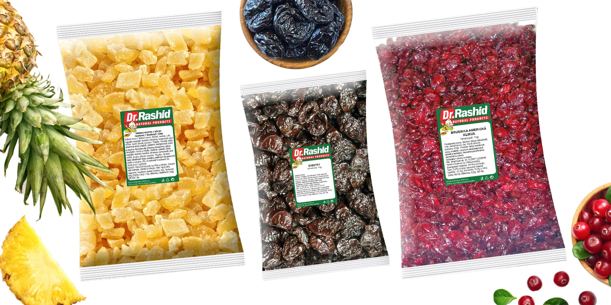 Na výber máte výborné slivky, šťavnaté brusnice, hrozienka, ananás, zázvor alebo mix lesného ovocia. Prečítajte si o ovocí viac a pokojne si objednajte aj všetko – taká dobrota sa sa doma nestratí.
