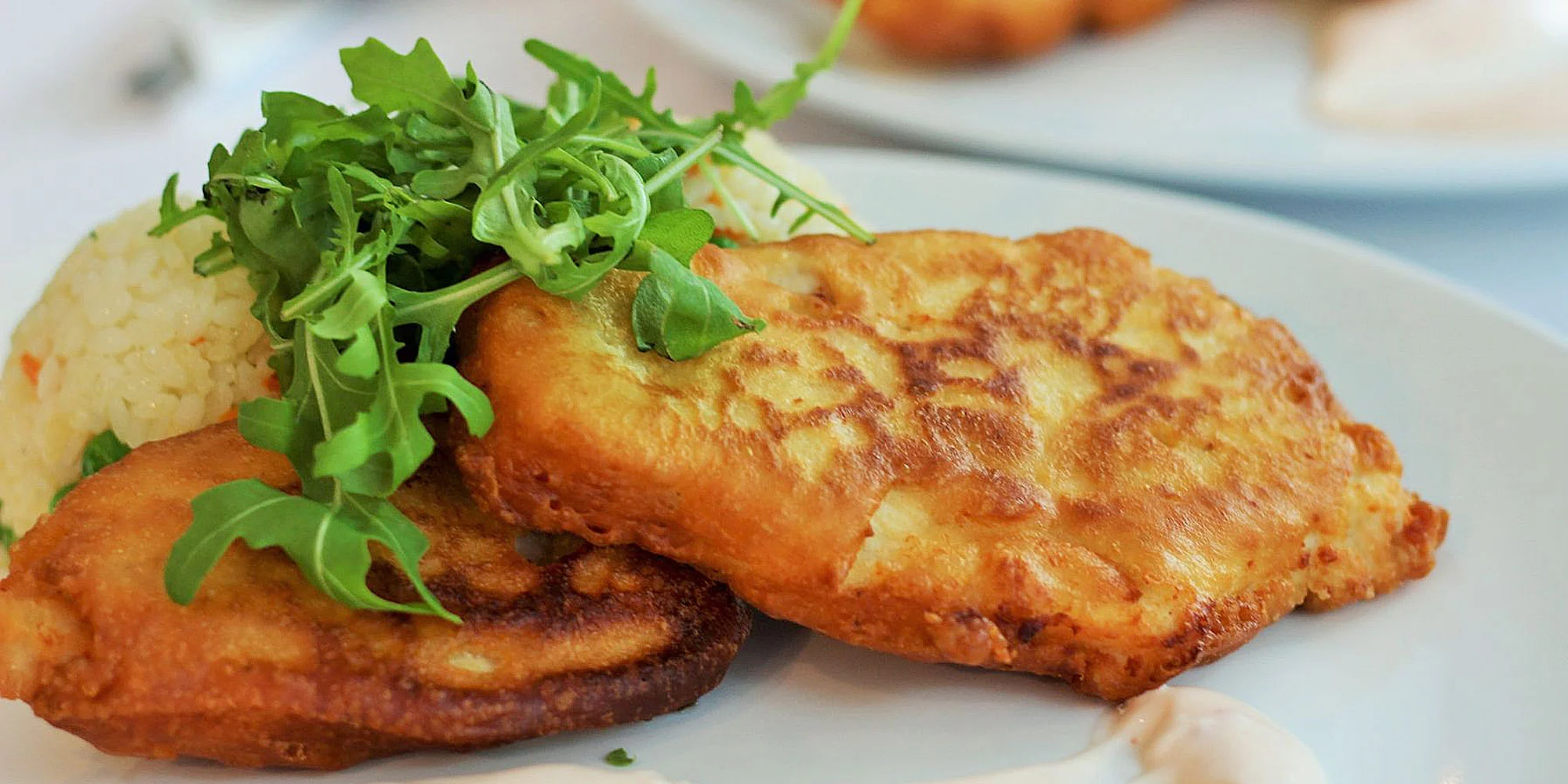 1 x Vyprážaný kurací rezeň s hranolkami alebo ryžou a polievkou podľa dennej ponuky