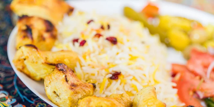 Nalaďte sa na orient a vychutnajte si výborné obedové menu formou samoobslužného bufetu. Vďaka aktuálnej ponuke si teraz môžete vybrať mäsové alebo vegetariánske/vegánske denné menu (denne od 11:00 do 15:00 hod.) či výborné perzské špeciality šišlik alebo Džužeh kebab s prílohou (kedykoľvek v čase otváracích hodín).