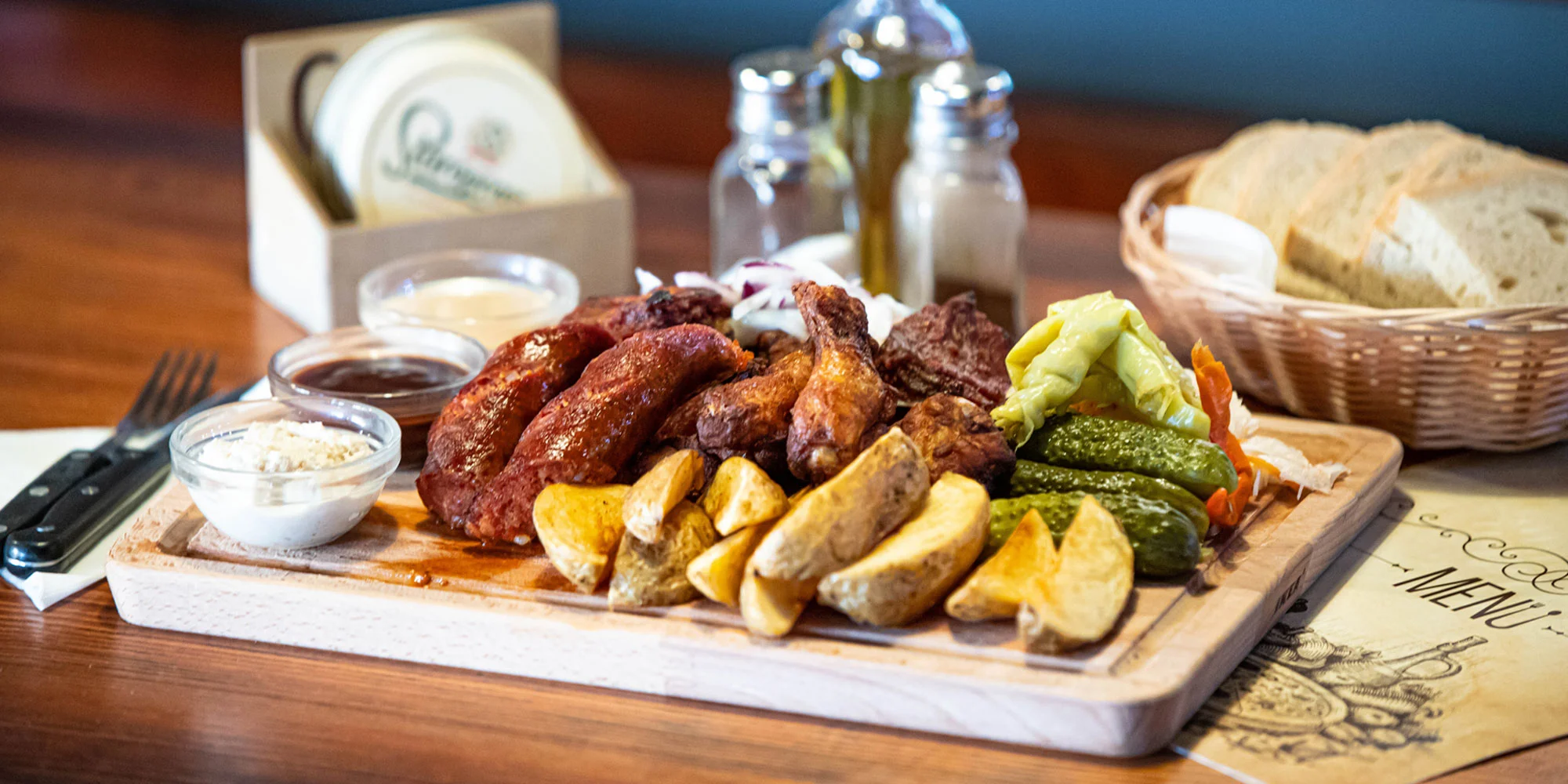 Gazdovské dobroty v Amici restaurant zasýtia nie jedného, ale rovno dvoch hladných labužníkov. Vychutnajte si spolu pečené rebrá, grilovanú klobásu, vyprážané krídla a bohatú prílohu servírované na drievku. K tomu dobré čapované pivo Staropramen, a ak vám nebude stačiť, môžete si pokojne dať ešte pizzu!
