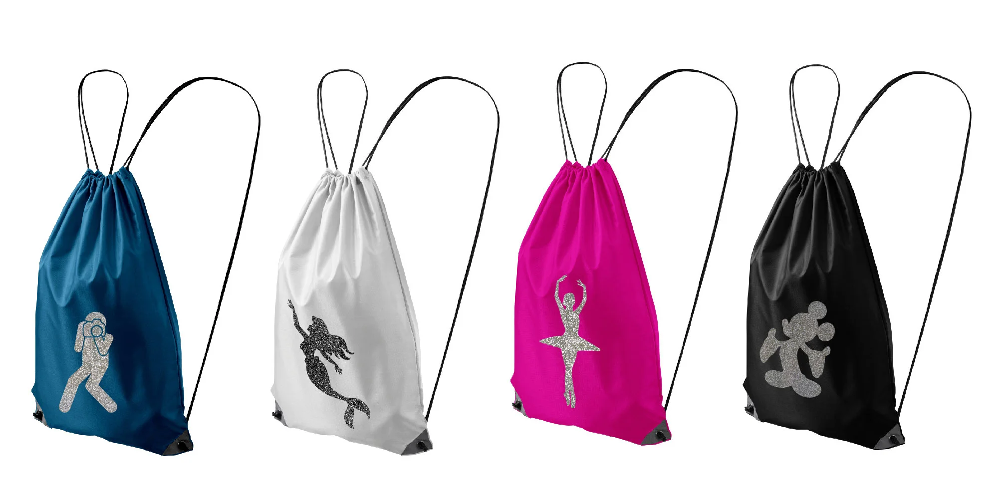 Praktické vaky na plecia s trblietavou potlačou si okamžite obľúbite – sú totiž potlačené štýlovými obrázkami, ktoré majú v tme vlastnosti reflexných prvkov.