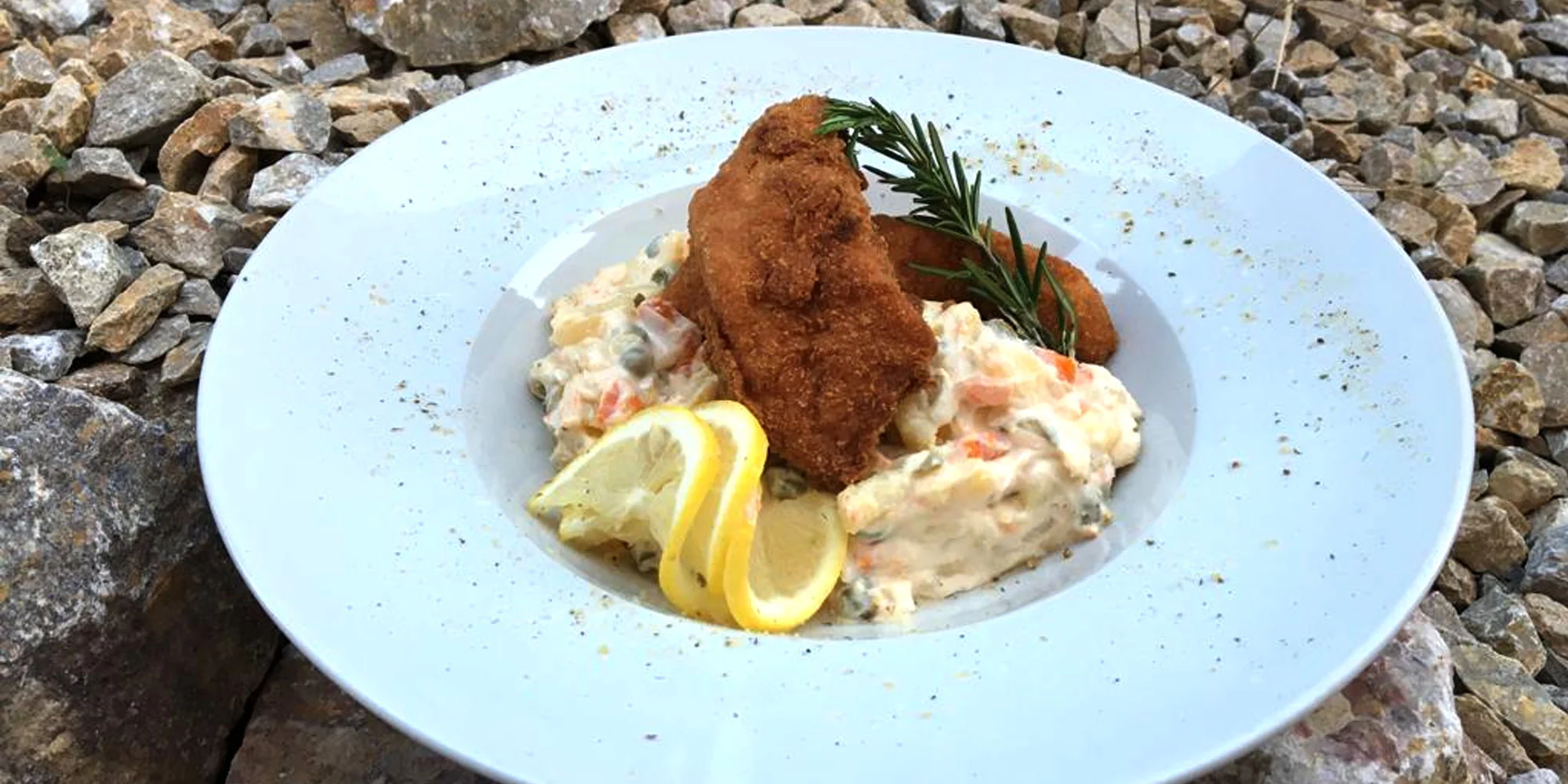 ALEBO - 2 × 200 g / 200 g Vyprážaný zubáč, zemiakový šalát (1, 3, 4, 7, 10)