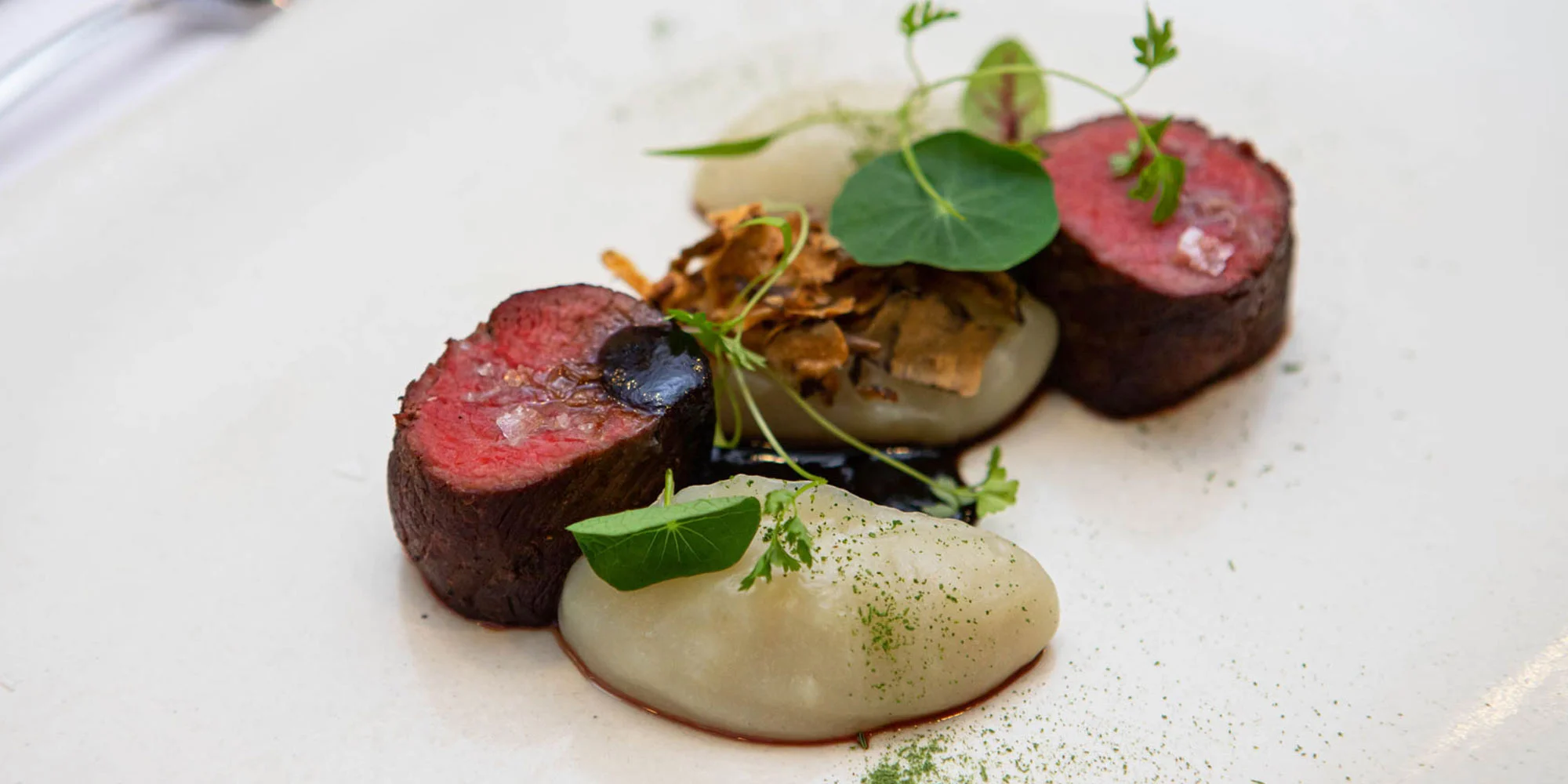 - 2× 85 g Jelenie karé s topinamburovým pyré, chipsami a bylinkovým prachom