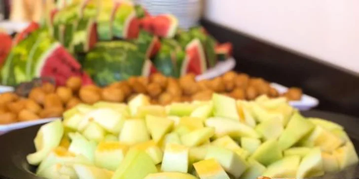 - 3 hlavné jedlá podávané formou bufetových stolov: raňajky, obed a večera